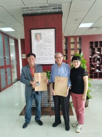 2022年11月21日下午,我接到文友陳水雄先生電話,說辛業(yè)江博士要與我見面。我為創(chuàng)作新的長篇小說熬夜到晚上三點(diǎn),擔(dān)心睡過了,上了手機(jī)鬧鈴。22日上午,我從演豐教工宿舍駕車趕到??诮?jīng)濟(jì)學(xué)院圖書館4樓辛業(yè)江捐贈文獻(xiàn)資料室。海南省委原宣傳部部長、副省長、省人大副主任辛業(yè)江博士及他的夫人李巧茹,親切地讓我坐下,給我倒了一杯茶水。