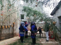 迎親的大隊(duì)伍來(lái)了,大門(mén)外已是一片歡騰,新郎挑著一副大擔(dān)子走在最前面,他一身彝族撒尼正裝,英俊瀟灑,今天是他一生中最為重要時(shí)刻,來(lái)迎娶自己的新娘,可是一大堆婆婆們守在大門(mén)口不讓進(jìn)啊,曾老師作為今天的星官和司儀,奮戰(zhàn)在最前方,他們?cè)诖箝T(mén)口反復(fù)拉劇戰(zhàn),幾經(jīng)斡旋,終于闖過(guò)了這道關(guān)。
