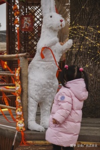 在兔子燈旁笑容綻放