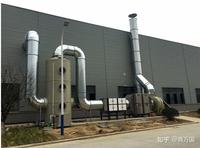 (d)除霧裝置 除霧器選用高效除霧塑料網棉,用于分離處理完的凈氣攜帶的液滴。吸收塔除霧器布置于吸收塔頂部最后一個噴淋組件的上部。廢氣穿過循環藥液噴淋層后,再連續流經除霧器時,液滴由于慣性作用,留在擋板上。由于被滯留的液滴也含有固態物,因此存在擋板結垢的危險,需定期進行清洗。
