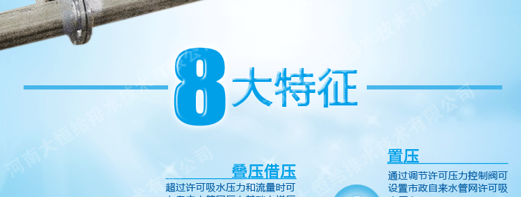 適用于具有自來水管網,需要增高水壓、調節流量的給水系統,可作為城鄉建筑小區、商務樓、賓館等場所二次加壓供水使用,產品具有外形美觀,安裝簡捷,節資節能,變頻控制,選材嚴格等特點。產品的衛生安全性符合《生活飲用水輸配水設備及防護材料衛生安全評價規范》標準的要求,該產品節能、環保,同時又避免了二次供水污染等特點,是一種理想的二次供水設備。
