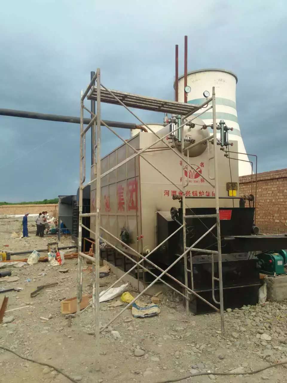 河南恒達(dá)鍋爐DZL型生物質(zhì)鍋爐是一種采用生物質(zhì)顆粒做燃料的單鍋筒縱置式鏈條爐排鍋爐,是新一代高效節(jié)能的鍋爐產(chǎn)品。它采用的燃料生物質(zhì)是一種理想的可再生能源,每年都有大量的產(chǎn)出,用它代替煤的燃燒,不僅可以為企業(yè)降低成本,帶來(lái)豐厚的經(jīng)濟(jì)回報(bào),而且廢物利用,增加了農(nóng)民的收入,實(shí)現(xiàn)了經(jīng)濟(jì)效益和社會(huì)效益的共同發(fā)展。不僅如此,此鍋爐還具有升壓快、熱效率高、受熱面積大等優(yōu)勢(shì)。 DZL型生物質(zhì)鍋爐是一種臥式三回程水火管鍋爐,設(shè)計(jì)時(shí)采用了高效節(jié)能強(qiáng)化燃燒技術(shù),保證了燃料的充分燃燒。更好的是爐膛、燃燼室的容積非常大,有利于飛灰的燃燼和沉降。出口煙氣窗處設(shè)置的有灰塵粗分離轉(zhuǎn)向室,達(dá)到了鍋爐爐內(nèi)除塵的目的,降低了煙氣的排放量,使之達(dá)到國(guó)家環(huán)保規(guī)定的指標(biāo)。性能特點(diǎn)1、采用螺紋煙管傳熱,提高了熱效率,降低了能耗。2、膜式水冷壁結(jié)構(gòu)的應(yīng)用,提高了傳熱系數(shù)和傳熱效果,降低了熱損失。3、螺紋煙管設(shè)置于鍋殼內(nèi),總體漏風(fēng)少,排煙熱損失小。4、鍋爐的焊縫均采用先進(jìn)的埋弧自動(dòng)焊工藝,保證了焊接質(zhì)量。5、尾部煙道布置有除塵器,保證煙塵排放符合環(huán)保要求。6、自動(dòng)化水平高,具有水自動(dòng)調(diào)節(jié)、低水位聯(lián)鎖保護(hù)、高低水位報(bào)警等功能。7、先進(jìn)的拱形設(shè)計(jì),形成明顯倒“α”火焰,有利于劣質(zhì)煤的燃燒,煤種適應(yīng)性強(qiáng)。8、控制監(jiān)測(cè)儀表齊全,鍋爐運(yùn)行安全可靠。9、兩翼煙道的設(shè)置,使煙氣能夠順利進(jìn)入前煙箱,使之前管板溫度相同,避免因溫度應(yīng)力而產(chǎn)生管板裂紋。10、爐排采用新型小鱗片式爐排片,增加了獨(dú)有的保險(xiǎn)環(huán),使?fàn)t排運(yùn)行穩(wěn)定可靠,提高了燃燒效率。技術(shù)參數(shù):型號(hào)規(guī)格額定蒸發(fā)量
